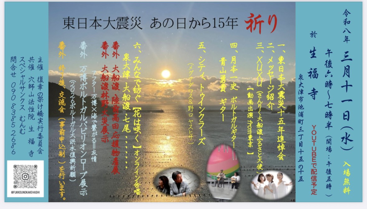 2024.3.11 【YouTubeチャンネル】3月11日に思いを寄せて「camellia〜椿のうた〜」+能登バージョン♪〜YouTube動画発信中♪